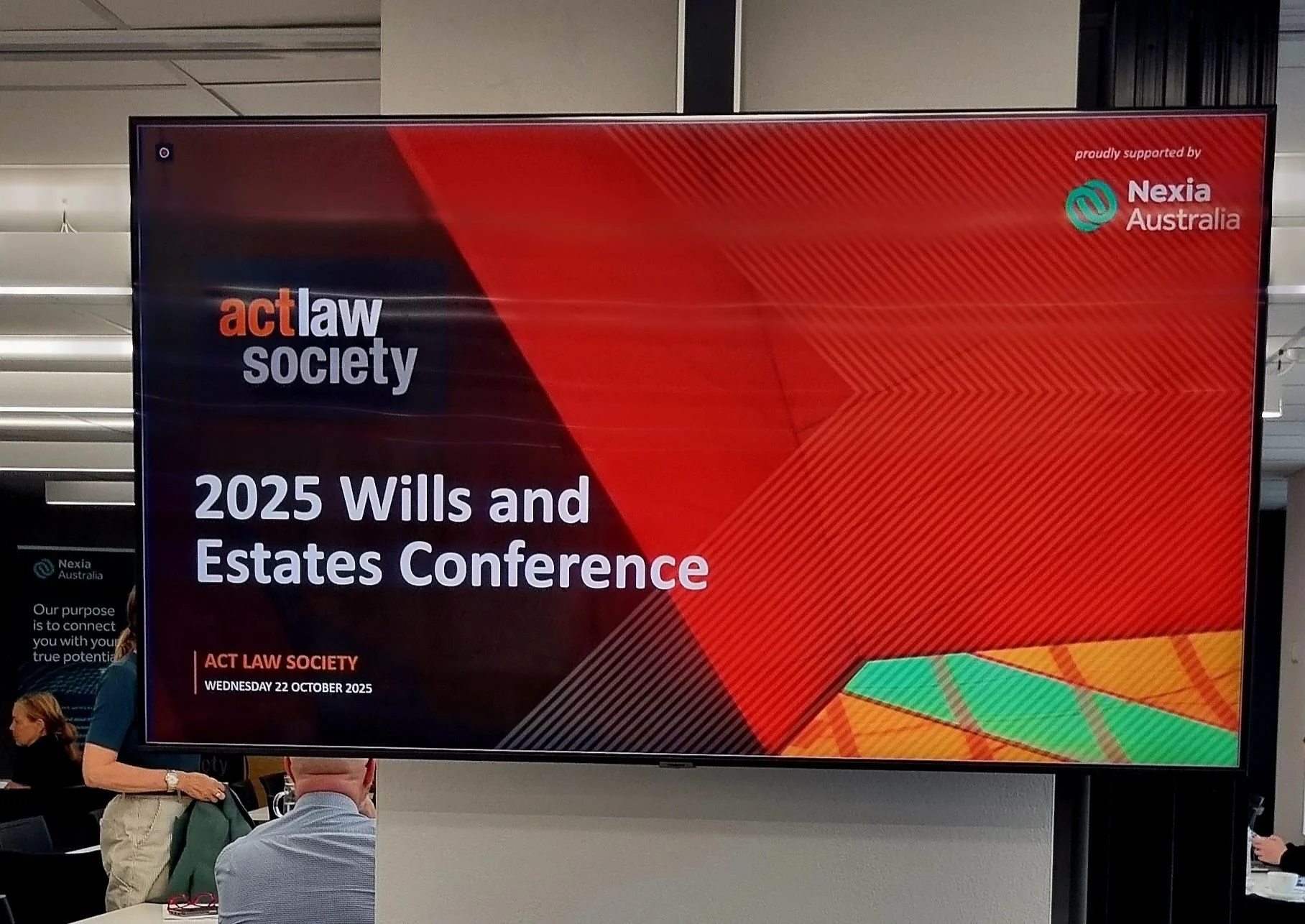 On 22 October, Alicia attended the ACT Law Society’s Annual Wills & Estates Conference hearing from the likes of Dr Kuhl from More than Medicine on Capacity, the Hon Philip Hallen SC on succession litigation and an array of other reputable local and interstate speakers on ethics, superannuation and succession law.